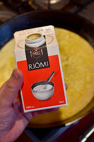 Það spannst talsverð umræða í dag um hvaða kjúklingarétt ætti að elda í kvöld. Ég stakk upp á Kjúkling Parmigiano - en Snædís var ekki spennt. Vilhjálmur stakk upp á þessum rétti og ég varð að játa að ég hafði aldrei heyrt hann nefndan. Og er ég þó nokkuð lesinn í ítölskum réttum. En það er gaman að láta koma sér á óvart - og eftir smá lestur varð þessi réttur til. Ég beygði aðeins frá uppskriftinni sem oftast var að finna á netinu og bætti smá lauk, hvítlauk og rjóma saman við það sem ég hafði kynnt mér um daginn.